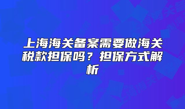 内容摘要:上海海关备案需要做海关税款担保吗?许多企业在办理进出口业务时,常常会疑惑:上海海关备案是否必须提供税款担保? 其实,这取决于企业的信用资质和业务类型。根据海关总署2021年100号公告,大多数企业需