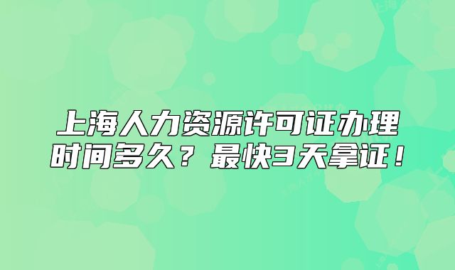 上海人力资源许可证的标准办理周期存在较大差异,主要取决于办理方式和材料合规性: