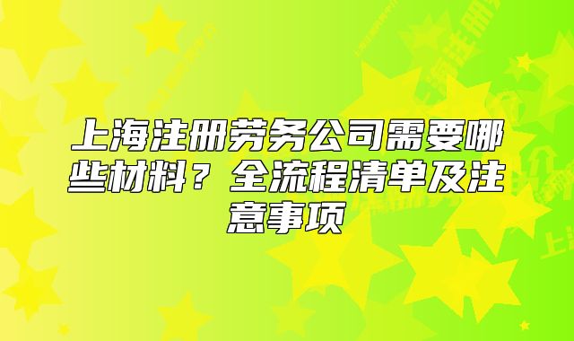 内容摘要:注册前必备材料清单1. 基础设立材料公司名称核准书:需提供3-5个备选名称,通过上海市工商局核验(如“上海XX劳务服务有限公司”)。股东及法定代表人证件:所有股东身份证复印件、法定代表人身份证原件及复印件。注册资...