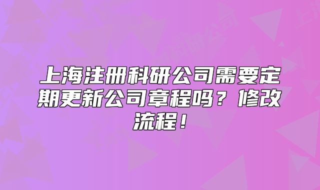 上海注册科研公司需要定期更新公司章程吗?修改流程!