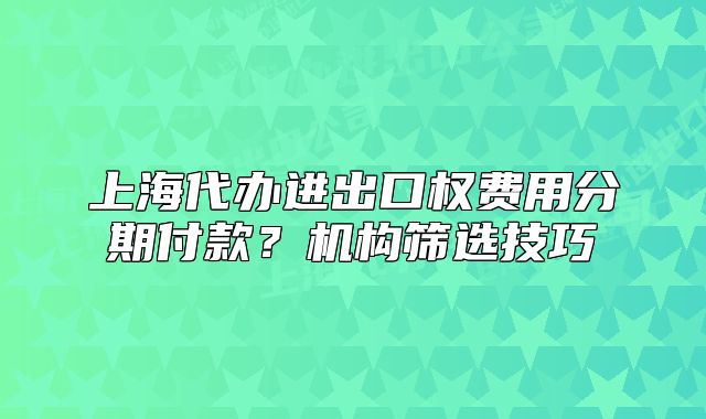 内容摘要:代办进出口权能否分期付款?在上海代办进出口权服务中,分期付款并非行业普遍规则,但部分机构会根据客户需求提供灵活支付方案。例如,代理费总额的50%作为预付款,剩余款项在办结后支付。需注意:风险提示:分期付款