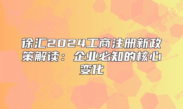 立即准备材料清单,把握徐汇2024工商注册政策红利窗口期,专业代理机构可助您抢占市场先机。